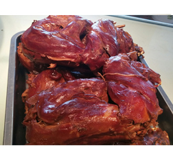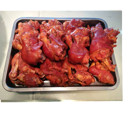 卓資山熏雞有近百年的生產歷史,明明熏雞成立于上世紀九十年代,從家庭生產,固定銷售到2006年正式注冊國家商標。明明熏雞公司是卓資山熏雞的重要組成部分,在卓資山熏雞傳統的制作方法和工藝基礎上,經過多年的潛心研究和實踐,形成一套完整的工藝流程和獨到的制作方法,其配方有30多種中草藥和多種佐料精心配制而成,口味醇香,香而不膩,余香綿綿不斷且富有多種營養元素,形成獨具特色,地道的卓資山熏雞。